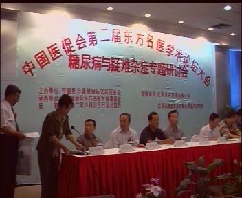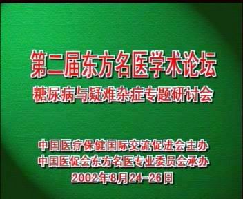 2002年8月23日至25日,由中國醫療保健國際交流促進會主辦、中國醫促會東方名醫專業委員會承辦的第二屆東方名醫學術論壇大會--糖尿病與疑難雜癥專題研討會在北京北苑賓館召開。