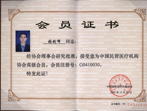 張劍鋒醫(yī)師成為中國民營醫(yī)療機(jī)構(gòu)協(xié)會高級會員
