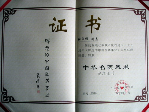 張寶增醫師的業績入編《輝煌的中國醫藥事業》大型畫冊