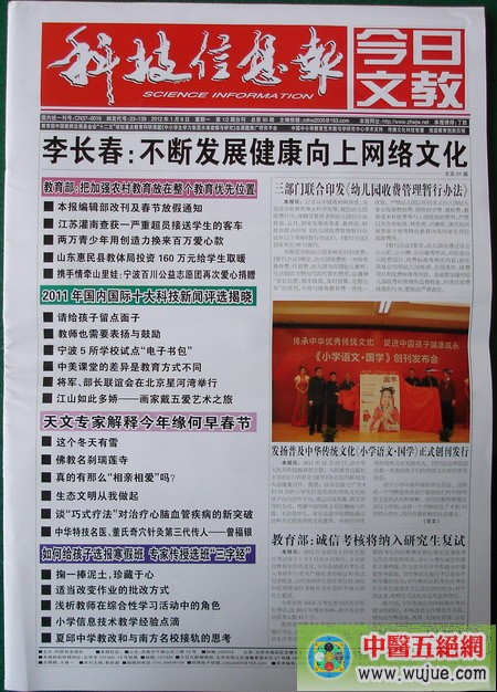 張劍鋒被科技信息報推薦為全國首屆民間優秀中醫