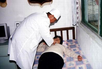 下圖為五絕指針療法創始人張寶增醫師正在為膽石癥患者治療的情況。