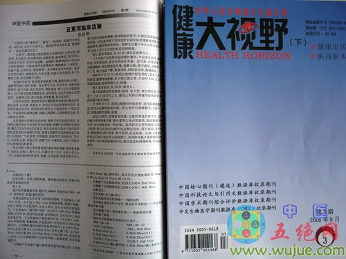 張劍鋒醫師撰寫的“五更瀉臨床治驗”一文,刊入《健康大視野》創新健康生活 醫技醫術 第三期 2008年9月刊