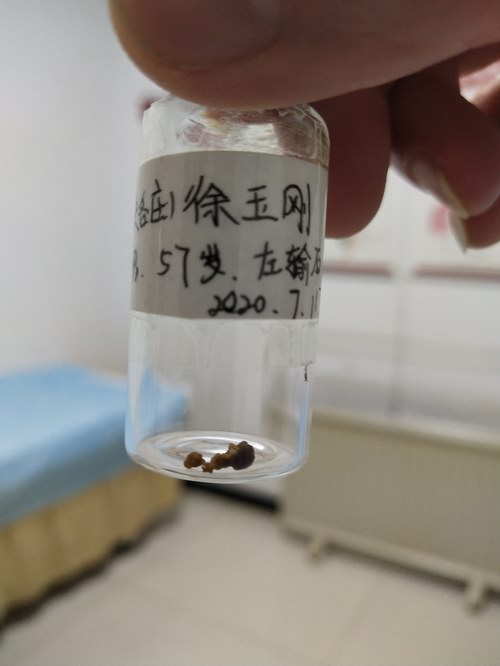 一位57歲男性輸尿管結石患者,經過五絕指針療法調理兩天后,于2020年7月11日上午排出的左側輸尿管結石。