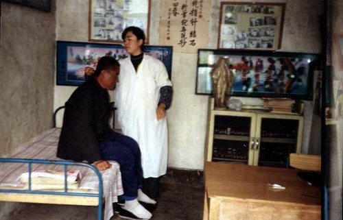 五絕指針技術人員正在采用五絕指針療法為膽結石患者治療。